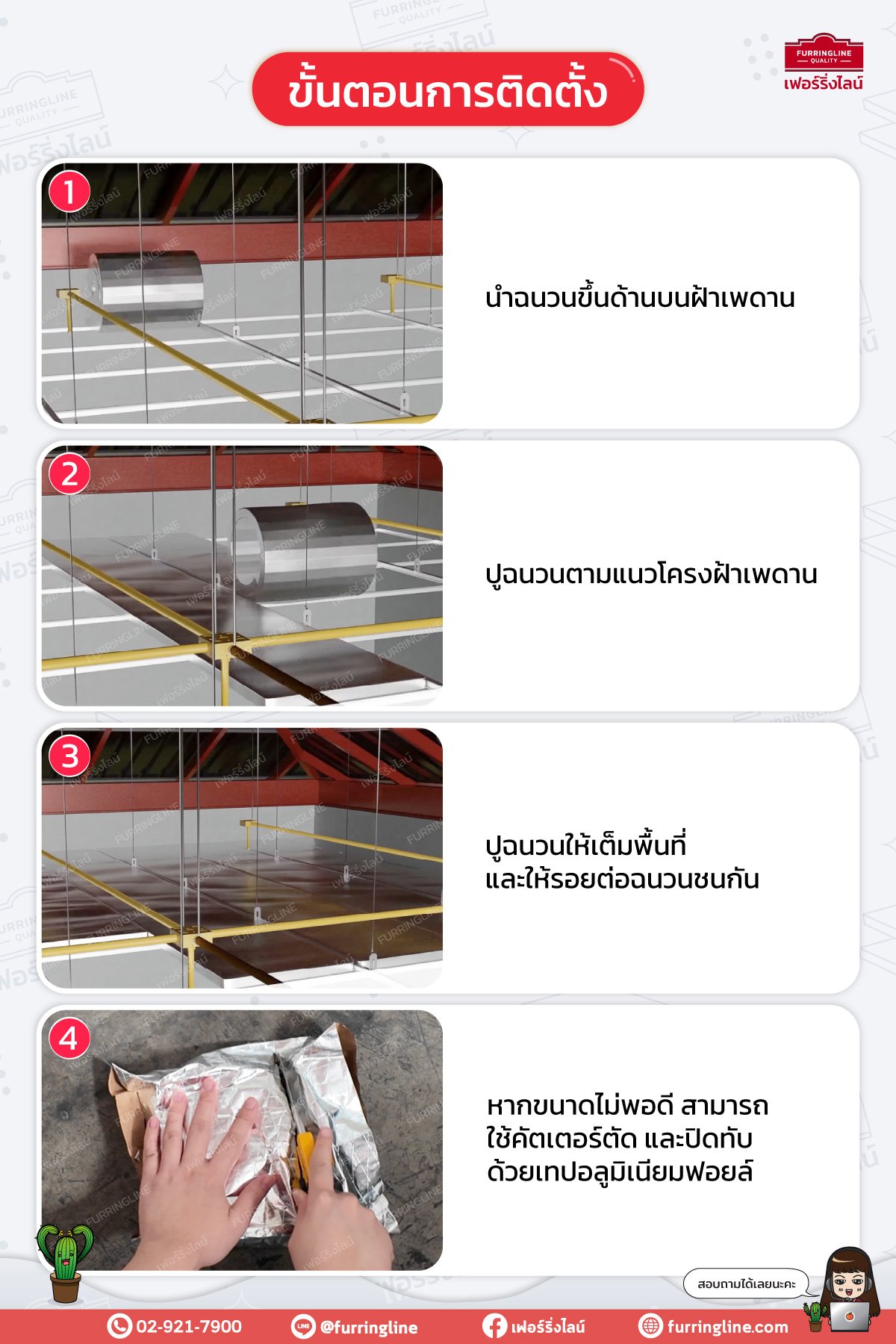 600 x 4000 มม. หนา 75 มม. (3 นิ้ว) ความหนาแน่น 30 กก./ลบ.ม. (30kg/m3) – น้ำหนัก 5.40 กก./ม้วน